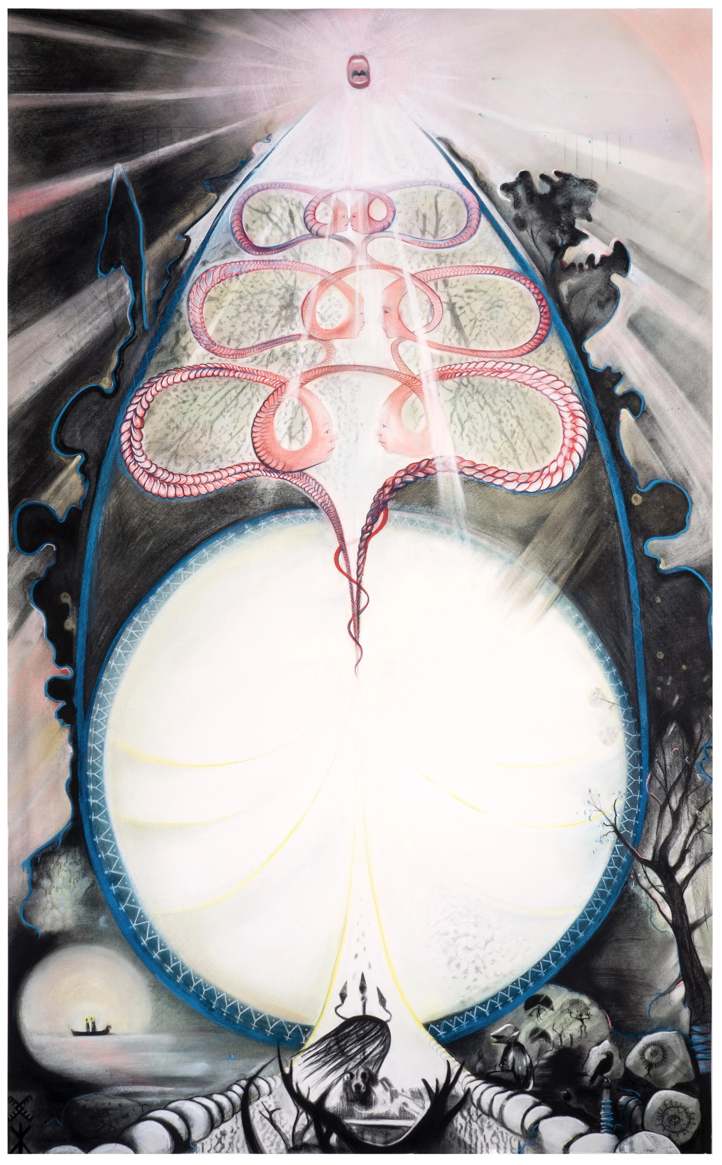 Seeking to both reconnect with my lost heritage and contribute towards healing the planet, I began to learn about Earth Living Systems and Gaia Theory, scientific insights built upon indigenous cultural knowledge, the practice of bio regeneration, and sustainable land stewardship. This ongoing project, including Calm Under the Waves, has led me to expand my knowledge and reframe my own beliefs about thriving pre-colonial civilizations. The Sakha series depicts my own journey through time, meditating upon my connection with an ancient Siberian lineage and exploring the spirituality of my ancestors as a source of inspiration and life.